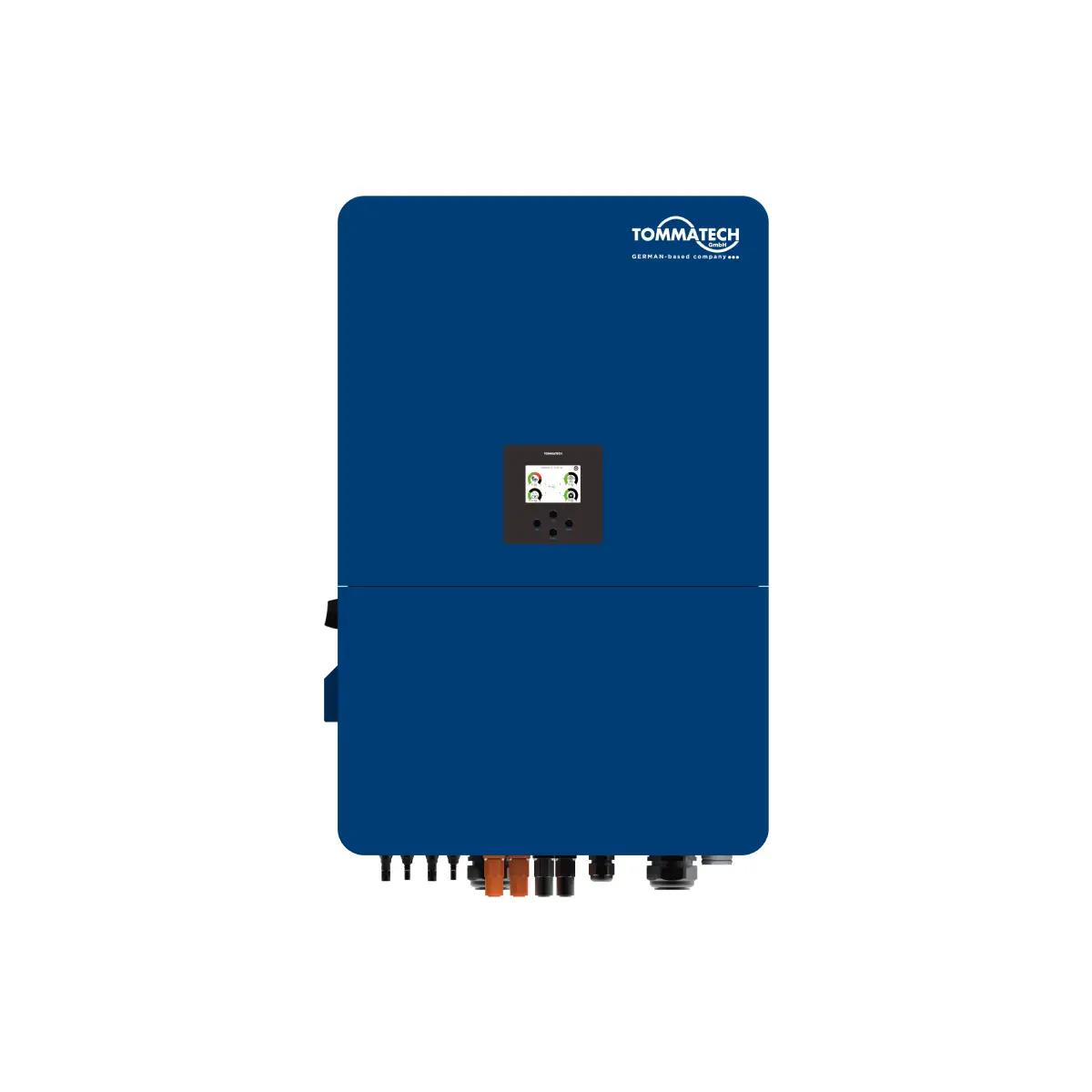 TommaTech'in M60/70/75/80K üç fazlı invertörleri hem ticari hem de endüstriyel projeler için ideal çözümlerdir. 6 MPPT desteğiyle yüksek verimlilik sağlarlar ve IP65 koruma derecesiyle dış mekan kullanımına uygundurlar. Model uzaktan izleme ve kontrol özellikleri sunar ve 10 üniteye kadar paralel bağlantı desteğiyle kapasiteyi artırabilir. Ayrıca yüksek verimli pil entegrasyonu ve şebeke dışı çalışma desteğiyle esnek ve güçlü enerji yönetimi çözümleri sunar.